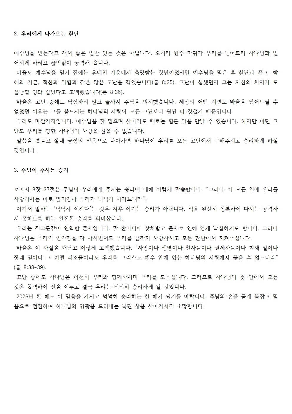 2026년 구정 가정예배순서지